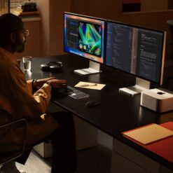 - Boosté par la puce M3 Ultra, intégrant un CPU jusqu’à 32 cœurs, un GPU jusqu’à 80 cœurs et un Neural Engine 32 cœurs